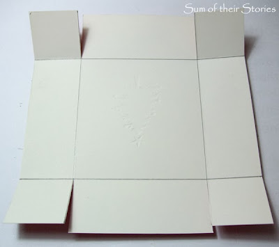 This card measured 16cm x 15.5cm and I measured 3.5cm in. The box finished up approximately 9cm x 8.5cm x 3.5cm.